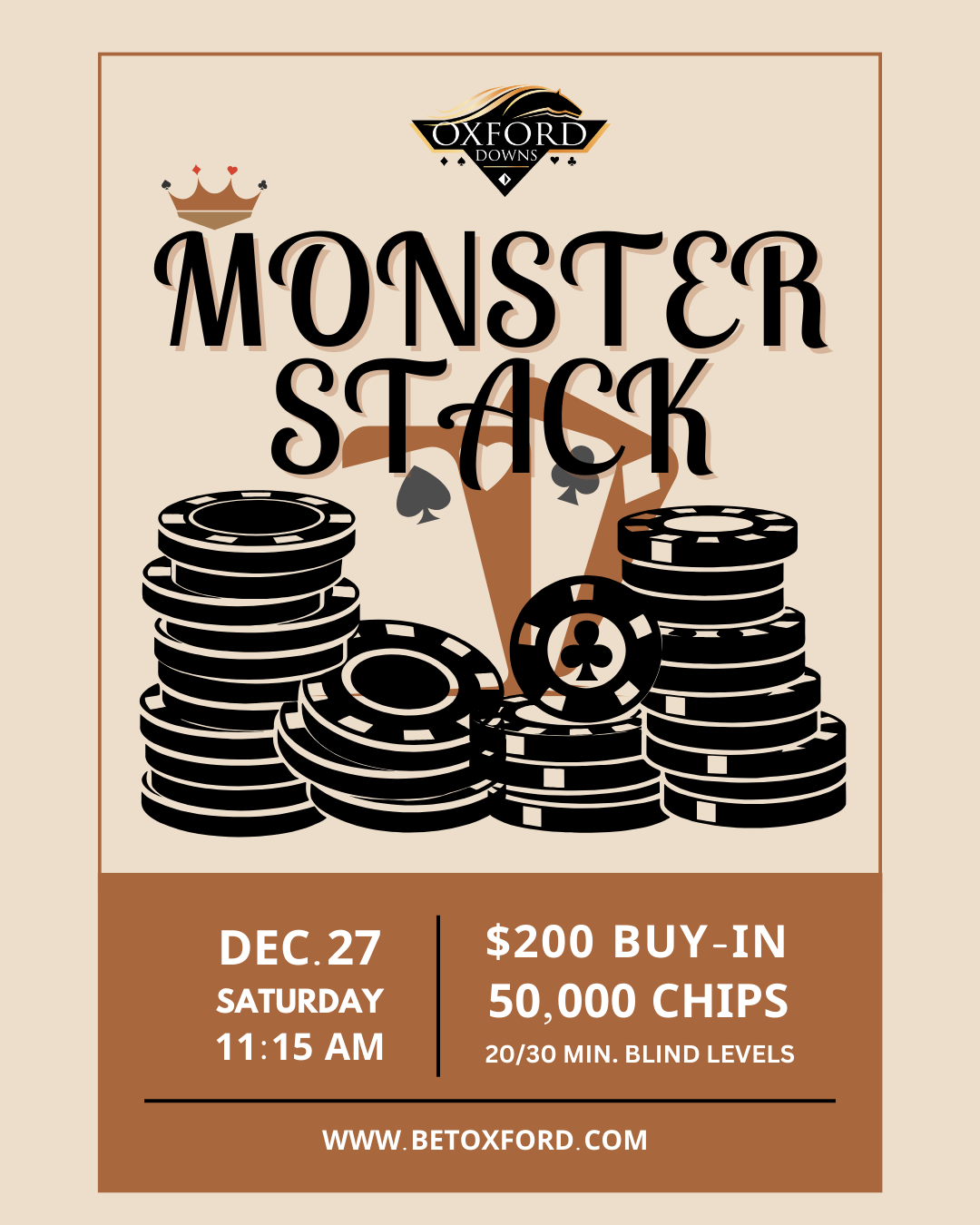 BUY-IN: $65($42 PLAYER FEE + $15 HOUSE FEE + $7 STAFF FEE + $1 JACKPOT) START TIME: 11:15 AM STARTING STACK: 25,000 BLIND LEVELS: 10 MINUTES